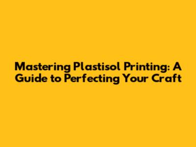 Mastering Plastisol Printing: A Guide To Perfecting Your Craft